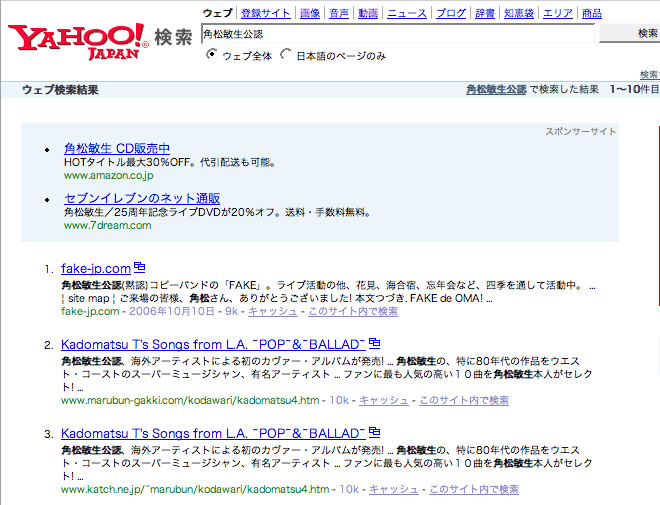 傑作なのは「角松敏生公認」と、キーワードで検索すると、Yahoo!でもGoogleでもトップに表示されちゃうという事実!