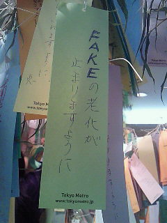 東京メトロの銀座駅にそんな短冊を掛けた輩がいます。